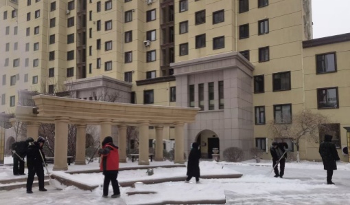 清晨时分,天色尚未完全放亮,紫光物业各小区的扫雪队伍已集结完毕。为确保业主早高峰出行顺畅,员工们将小区主干道作为清扫重点,采取“分段包干、逐个突破”的方式,全力清除积雪,保安、保洁、客服等各岗位人员打破职责界限,手持扫帚、雪锹等工具,奔赴小区主干道、单元门口、地下车库出入口等重点区域,有条不紊地展开清扫作业。寒风凛冽中,员工们不畏严寒,分工协作,有的用雪锹铲除压实的积雪,有的用扫帚清理残留的雪渣,大家配合默契、干劲十足。