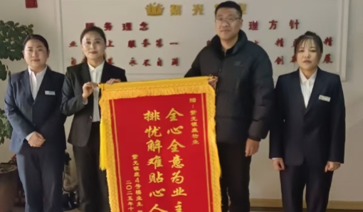 近日,紫光银座小区4-1单元业主将一面写有“全心全意为业主 排忧解难贴心人”的锦旗送到紫光银座物业服务中心,以此表达对物业团队快速响应、高效处置家中漏水问题的诚挚谢意。一面锦旗,不仅是业主对物业服务的高度认可,更承载着物业与业主之间浓浓的温情与信任。