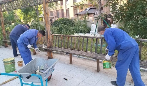 截至目前,园区木质设施的木蜡油涂刷工作已接近尾声。经过维护后的木质凉亭、座椅及地板,不仅重新焕发出温润的木质光泽,色彩也更加鲜亮,整体视觉效果大幅提升,同时也增强了木材的抗腐蚀、抗老化能力,为业主提供了更优质的休闲、居住环境。
